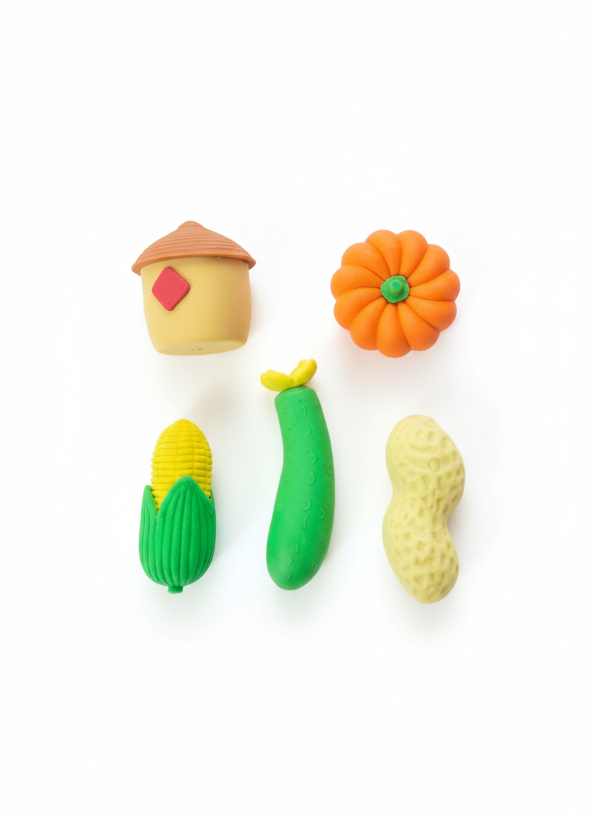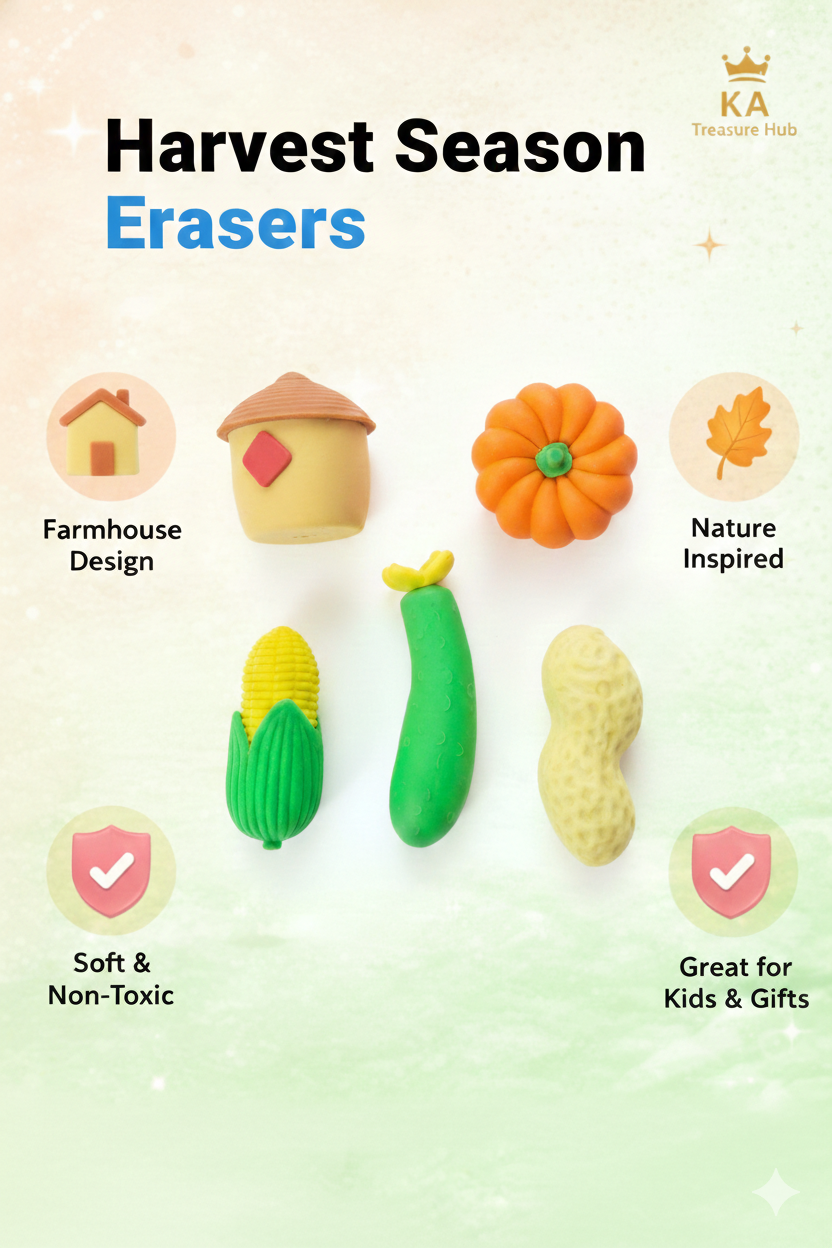 Harvest Season 3D Vegetable Eraser Set – Corn, Pumpkin, Peanut & More (DIY Fun Pack)